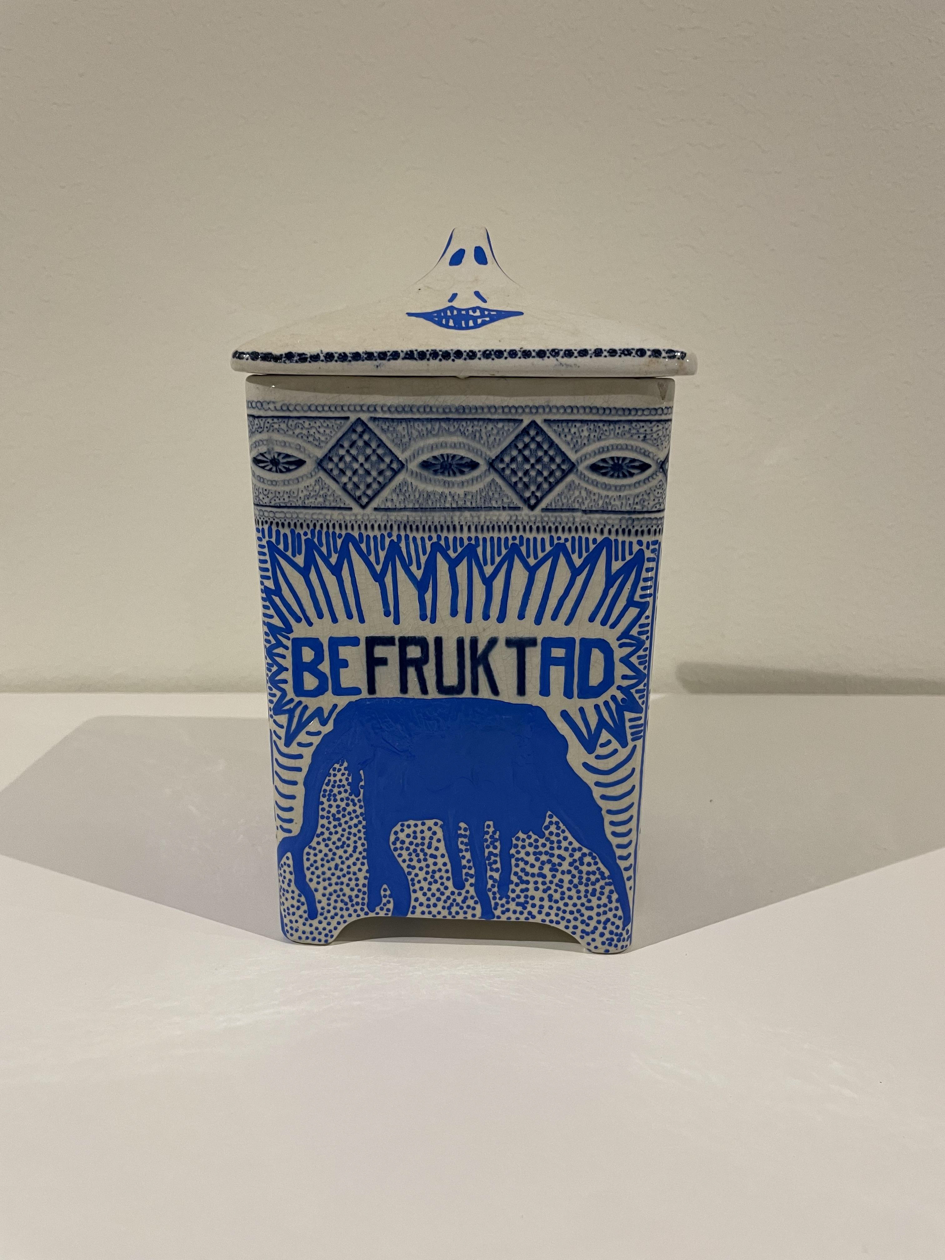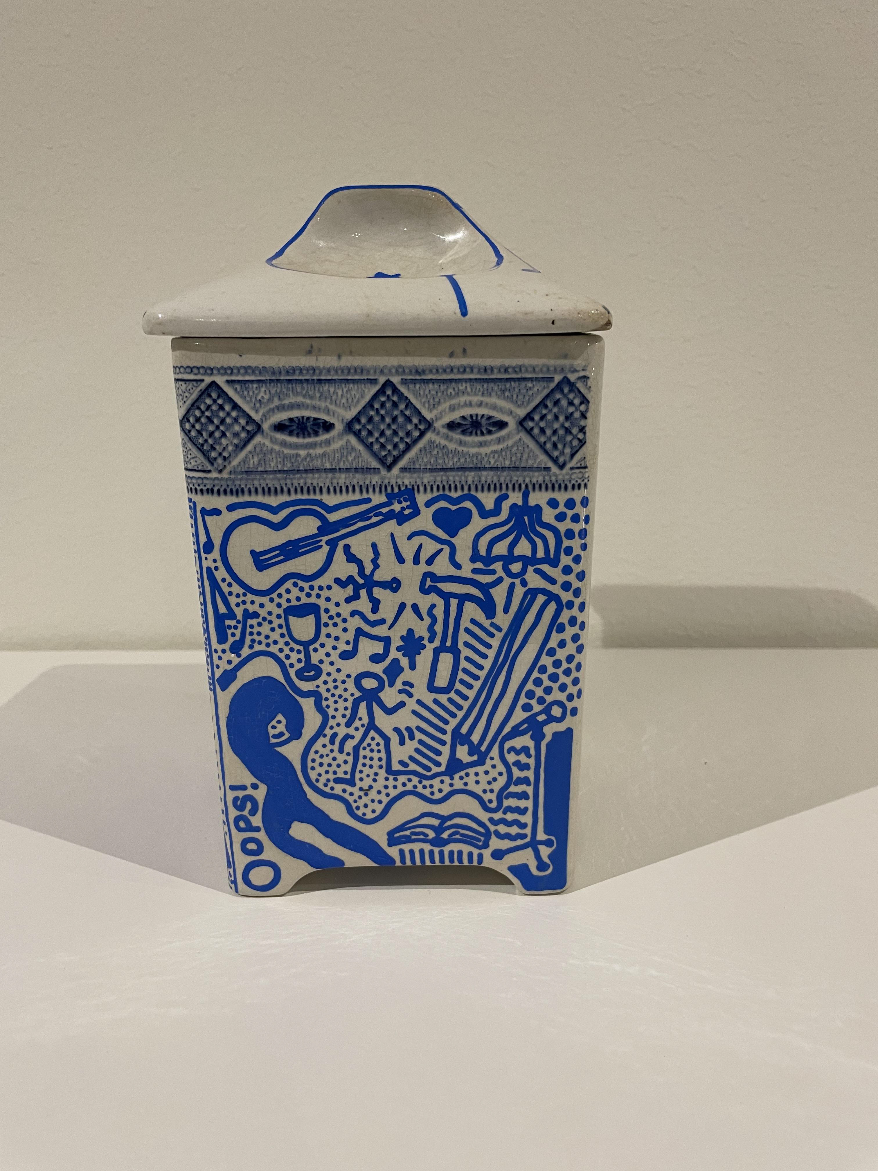Uni Paint Marker på porslinsburk från Gefle. Har ställts ut på Galleri Borgenhag Holmqvist i Eskilstuna vintern 2025. Pris 3500kr.